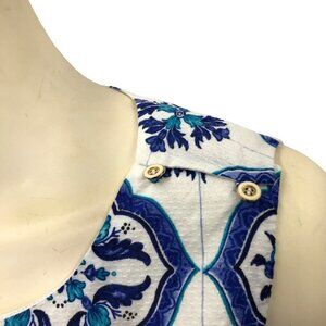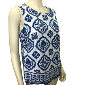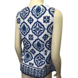 TALBOTS white & blue SLEEVELESS BLOUSE SIZE 8