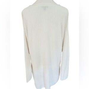 TALBOTS white ribbed cotton/rayon crew neck, drop shoulder, rounded bottom sz XL. Rounded bottom hem with side button accents.