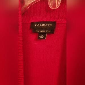 TALBOTS L 100% PURE MERINO WOOL Lngslv Knit Cranberry Women's Opened Cardigan