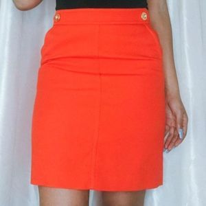 TALBOTS Red Orange A Line Pencil Skirt w/ Gold Button Accents