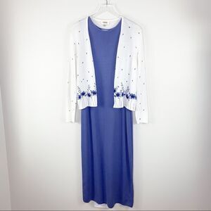 TALBOTS Sleeveless Scoop Neck Knight Maxi Dress w/White/Blue Floral V-Neck Cardi