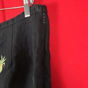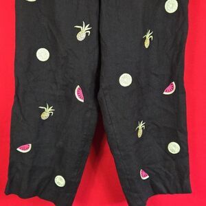 TALBOTS VINTAGE Linen Fruit Embroidered Cropped Pants Black Size 12P Lagenlook