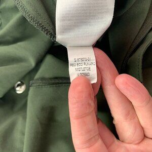 Excellent used condition, ultra lightweight polyester stretch blend athleisure pant has no significant signs of natural wear or overuse. 4 pockets, zip front, belt loops, back elastic waist, high rise, wide legs, elastic band/toggles inside hems so they can be worn more like a harem pant. Size Large Tall, please reference measurements for sizing & fit inquiries.