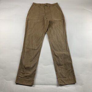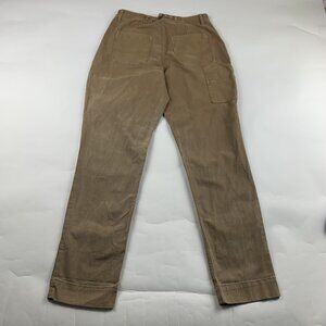 Excellent used condition, cotton stretch blend sturdy canvas pant has no significant signs of natural wear or overuse. Washed dyed canvas has a tendency to look faded/worn by design. 5 pockets, zip front, high rise, belt loops, straight leg. Size 6 Tall, please reference measurements for sizing & fit inquiries.