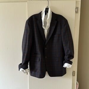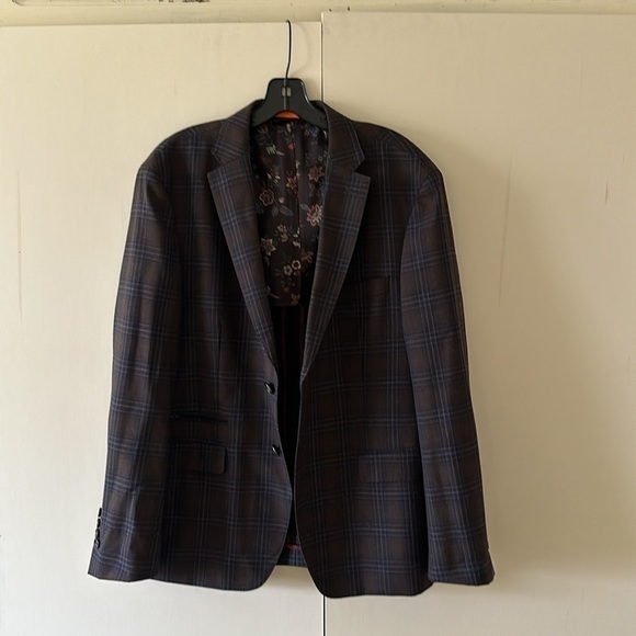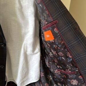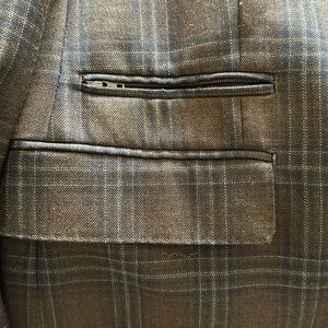 TALLIA men’s brown and navy blue pinstriped double breasted button down long sleeve blazer size ( not sure I believe it’s a 40R)