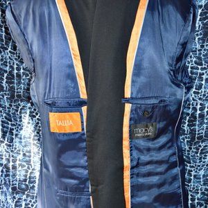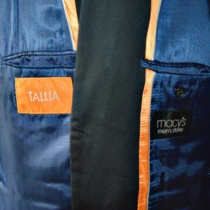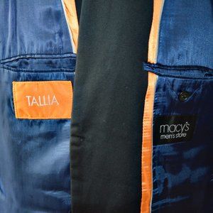 TALLIA MACY'S MEN STORE 46R BLACK 100%WOOL 2 BUTTON SILVER TONE DOUBLE SLIT