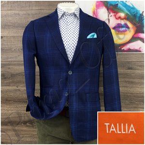 TALLIA Mens Blazer Sport Coat Two Button Casual‎ Jacket Size 38L Linen Blue Suit