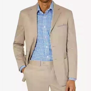 Stylish tan suit jacket by TALLIA. Ideal for formal events. Classic and versatile design. TALLIA Tan Suit Jacket blazer size 38R EUC