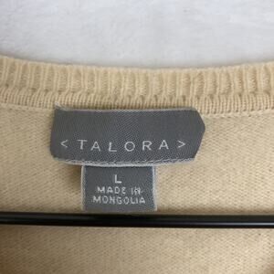TALORA 100% Cashmere Sweater Women's Sz L Cream Knit Short Sleeve V-Neck Classic