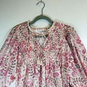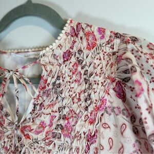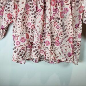Charming floral design. Features pink and cream hues. Lightweight and stylish. Perfect for casual wear.