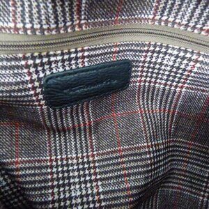 Very nice large handbag I had brought back from Germany on my last trip. The bag outside as inside is in excellent condition except one handle (see picture). It got accidentally scraped against something. The inside lining is a tartan / check design. On the inside it has two large compartments. The one on the backside has a small zippered pocket, the middle has a skinny large with zipper divider and the front one has a cellphone pocked. I used the bag maybe 4 to 5 times. I just do not have usage for large handbags......
