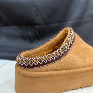 TAN FUR PLATFORM SLIPPERS