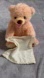 Tan plush teddy bear holding a satin-edged blanket. The teddy bear interacts with the child by talking and playing hide and seek. There is an on/off switch on the bottom of the toy. This toy is in excellent preloved condition with no flaws.