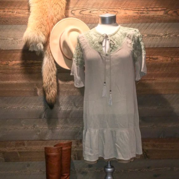 TAN LACE DETAIL DRESS