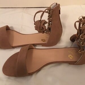 Tan and gold lace up wrap sandals Colin Stuart NEW in box! Get your warrior on with them sexy wrap sandals. Size 7.
