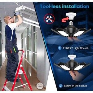 The garage light fixture adopts a 6+1 panel design, 6 adjustable 0-90° panels + 1 central lighting panel, which is adjustable to illuminate specific areas and achieve 360° all-round lighting coverage, garage lights to light up your life