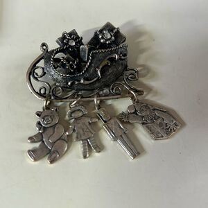 TANCER II Adorable Brooch Dangling toys from Santa’s slay Vintage