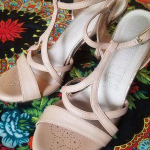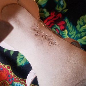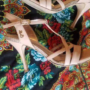 Stunning, Gold Glitter accent with Sexy Nude leather topping.
