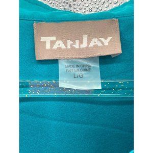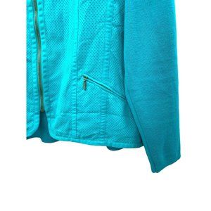 TANJAY Teal faux suede jacket coat Perforated Sz Large Women's Two Pockets Front