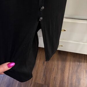 This Sleeveless Slinky Maxi Tank DRESS is just calling out for Summer Hot weather! It has a low cut front & back scoop neck and of course that AMAZING slinky fabric of 94% acetate 6% spandex. High 13” side slits on both sides accented with 3 buttons for detail…COOL & FLOWING…Maybe even a beach coverup..?..SZ M GOOD CONDITION