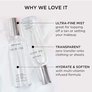 A vitamin-infused, streak-free tanning water that provides a radiant glow.