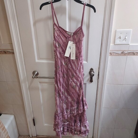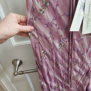 TANNER FLETCHER Celeste Mauve Floral Sequin Chiffon Slip Dress
