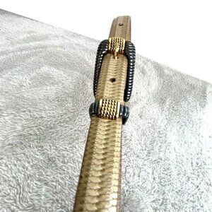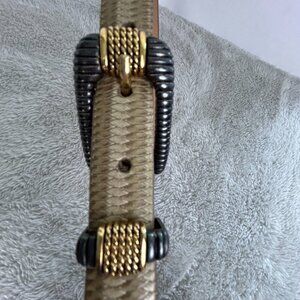 TANNER Light Gray Brown Genuine Leather Snake Belt Made USA Metal Buckle Small