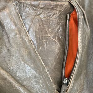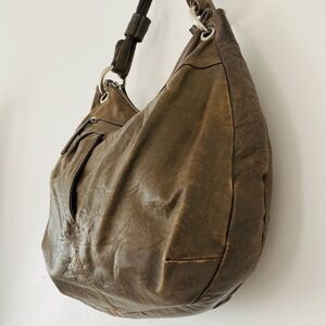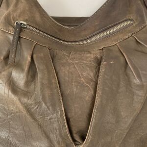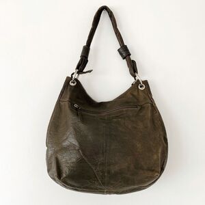 TANO Distressed Leather Olive Green Hobo Bag Slouchy Many Pockets Boho Urban