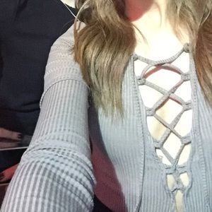 TAN/TAUPE LACE UP LOW V CUT LONG SLEEVE BODYSUIT