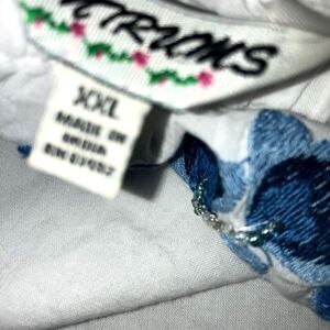 TANTRUMS Solid White 100% Cotton Peasant Top with Blue Embroidered Flowers In very good condition and is Fresh & Clean and Ready-to-Wear - Has been laundered in Ecos non-scented soap and hung dry just prior to listing. Size XXL - Bust-54" / Waist-54" / Length-29"