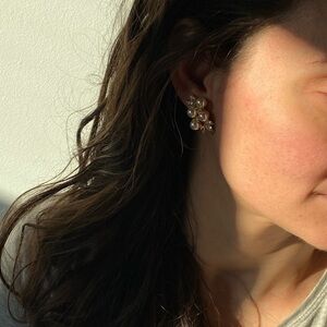 TANYA Lind Pearl rhinestone clip earrings 1”