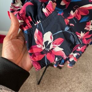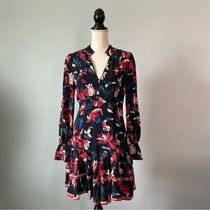 Gorgeous long sleeve 100% silk dress featuring floral-print detail. Long poet sleeves, ruffled skirt with hourglass shape - perfect for work, parties and everything in between!