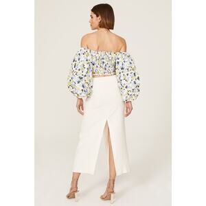 TANYA TAYLOR Blue Floral Cotton Off Shoulder Puff Sleeves Alondra Top Size 2