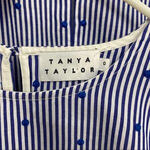 TANYA TAYLOR Blue Striped Swiss Dot Blouse