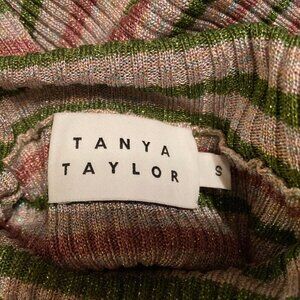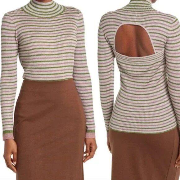 TANYA TAYLOR Carsten Metallic Striped Ribbed Open Back Turtleneck sweater, Small