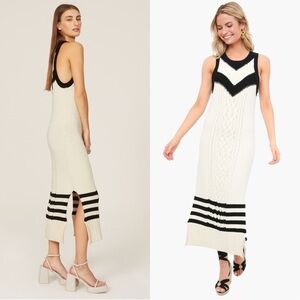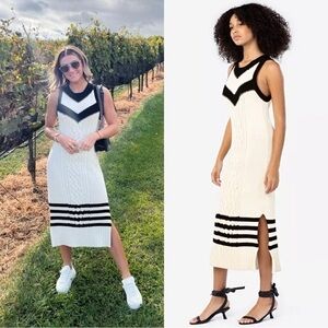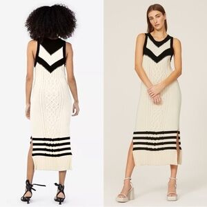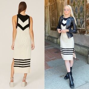 TANYA TAYLOR Chevron Striped Cable Knit Organic Cotton Sleeveless Sweater Dress