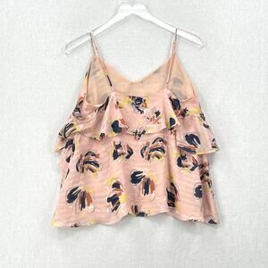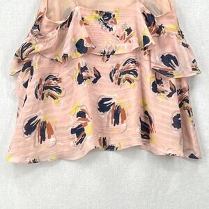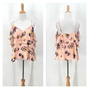 TANYA TAYLOR Chiara Silk Cold Shoulder Top Womens 4 Pink Abstract Floral Ruffle