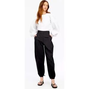 TANYA TAYLOR Dionne Pants Zip Fly Balloon Hem High Rise Cotton Poplin Black 8