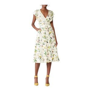 TANYA TAYLOR Inez Cream Floral Linen Flutter Sleeve Midi Dress Size 4 ($245)