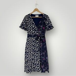 TANYA TAYLOR Luisa Mixed Print 100% Silk Wrap Dress Sz 6 Navy Pink