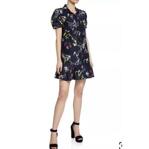 TANYA TAYLOR Navy Printed Floral Button Up Collared Aliciana Shirt Dress Size 14