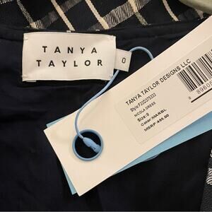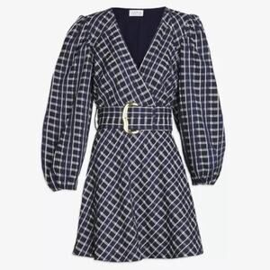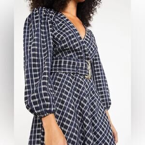 TANYA TAYLOR Nicola Mini Dress Navy White Check Puff Sleeve Fit & Flare Belt NEW