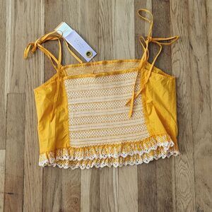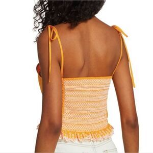 TANYA TAYLOR Randy Smocked Eyelet Top marigold orange yellow NWT
