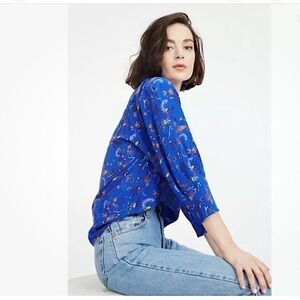 A delicate theme emerges in this flowery of silk blouse cut with a face-framing. V-neck and a graceful balloon puff sleeve finished with gently pleated cuffs. V-neck Three-quarter balloon sleeves. Pull-on closure. All-around floral pattern. Unlined Fabric 100% Silk.