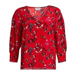 TANYA TAYLOR Rena Tulip Print Silk Top Papay Red NWOT