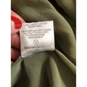 TANYA TAYLOR Ruffle Sleeve Green Red Floral Lined 100% Silk Size 12 V Neck