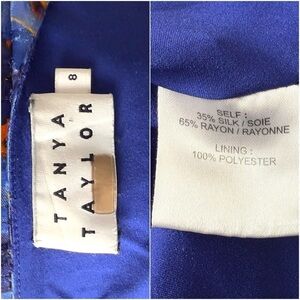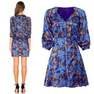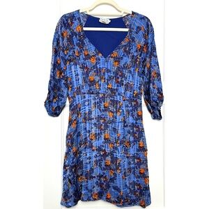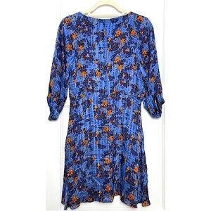 TANYA TAYLOR Silk Floral Plaid Burnout Print Puff Sleeves Ruffled V-Neck Dress 8