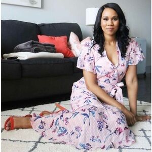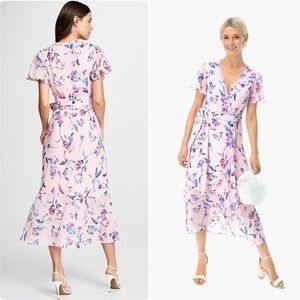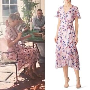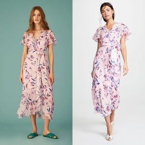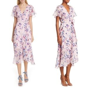 TANYA TAYLOR Silk Floral Wrap Short Sleeve Ruffle Taylor Swift Midi Dress 10