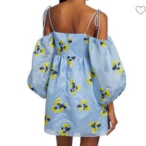 Tanya Taylor's Marisa minidress is crafted of floral jacquard. Tie-shoulder straps and voluminous off-the-shoulder puff sleeves define this empire waist style.