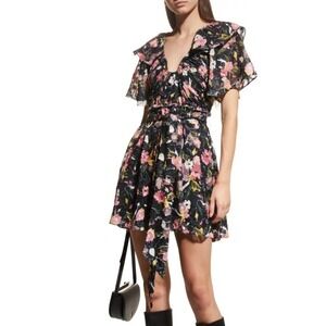 Tanya Taylor NWT $495 Mara Floral Print Flutter Sleeve Mini Dress Size 10